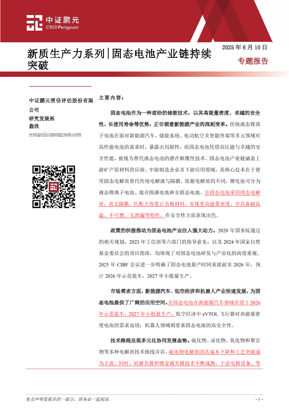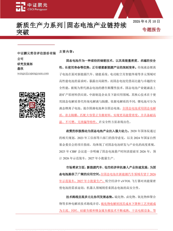 【中证鹏元资信评估股份有限公司】【20250610】新质生产力系列_固态电池产业链持续突破-20页