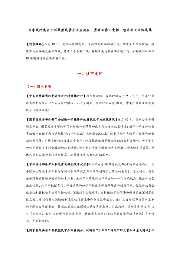 【东方金诚】【20250611】国家发改委召开科技型民营企业座谈会;资金面依旧宽松_债市全天窄幅震荡-8页