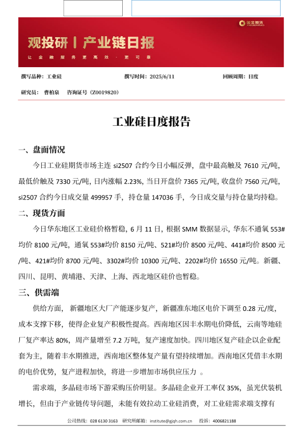 供需分析 工业硅 市场价格波动 期货市场 现货价格