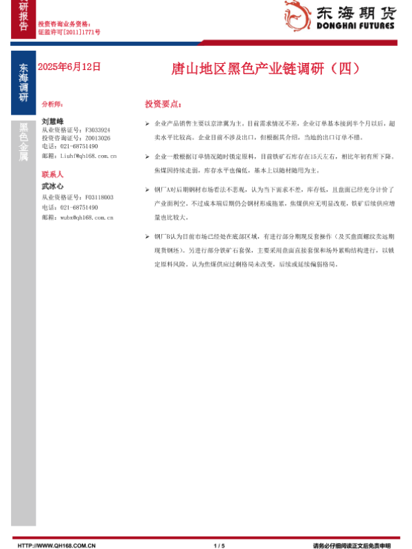 【东海期货】【20250612】唐山地区黑色产业链调研(四)-5页