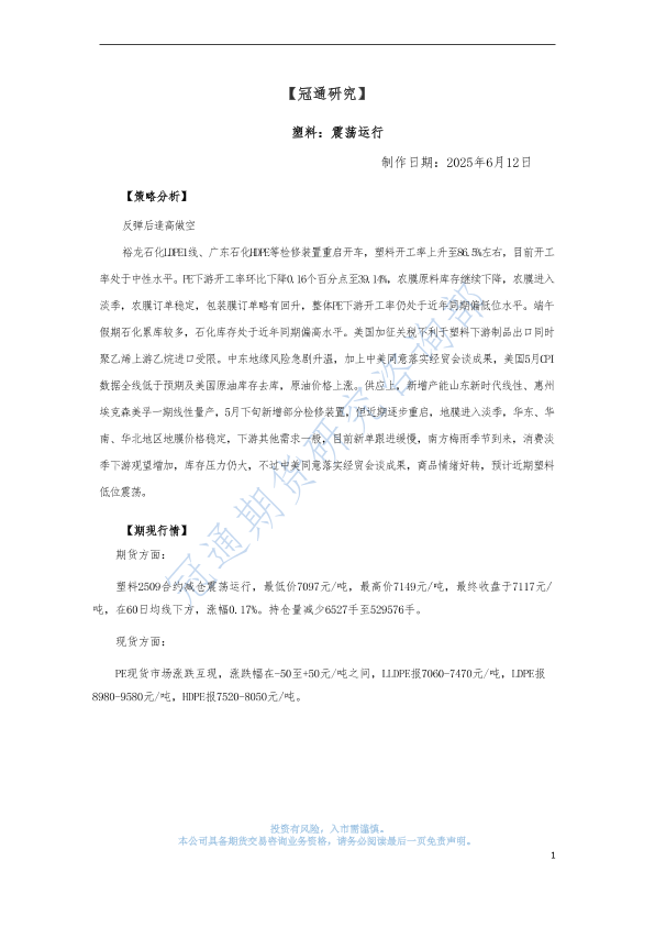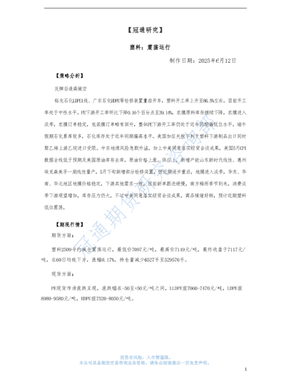 【冠通期货】【20250612】塑料:震荡运行-3页