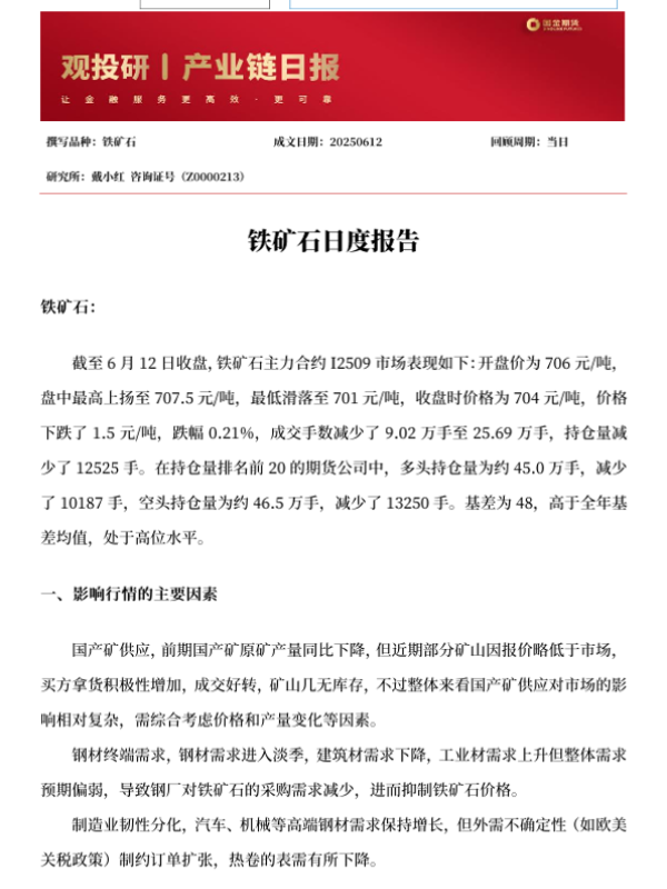 价格走势 市场分析 影响因素 期货市场 铁矿石