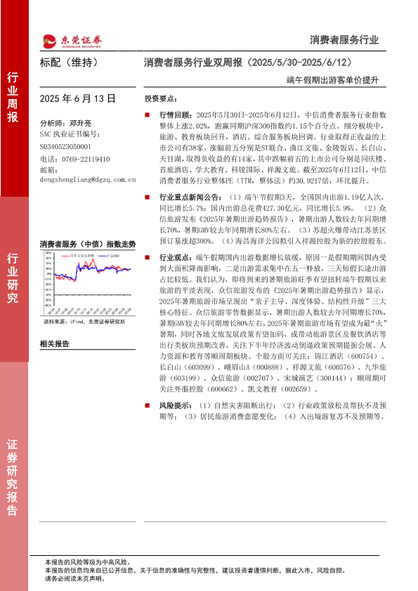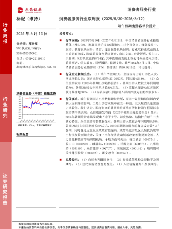 【东莞证券】【20250613】消费者服务行业双周报_端午假期出游客单价提升-10页
