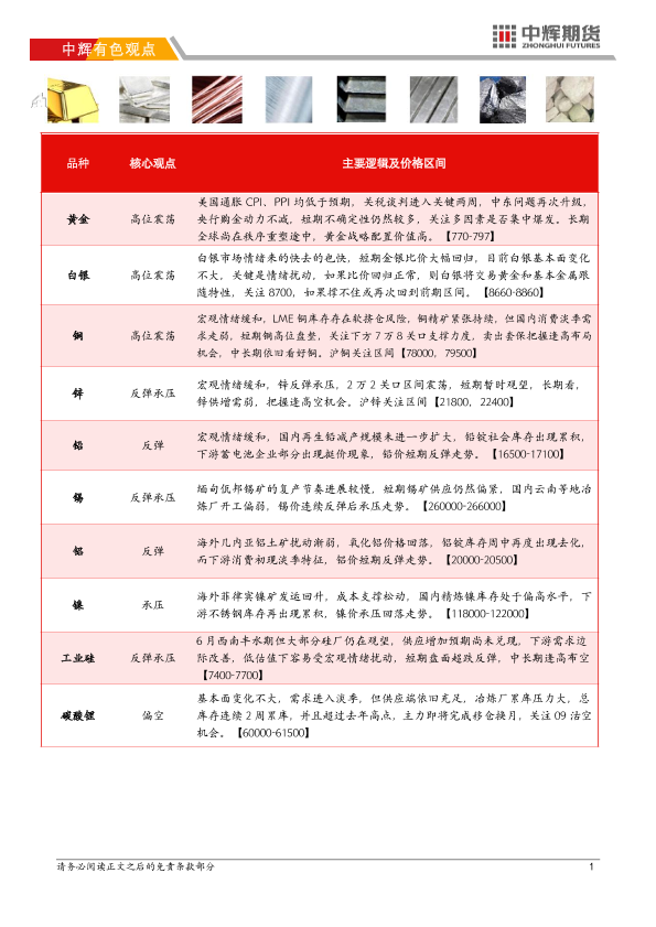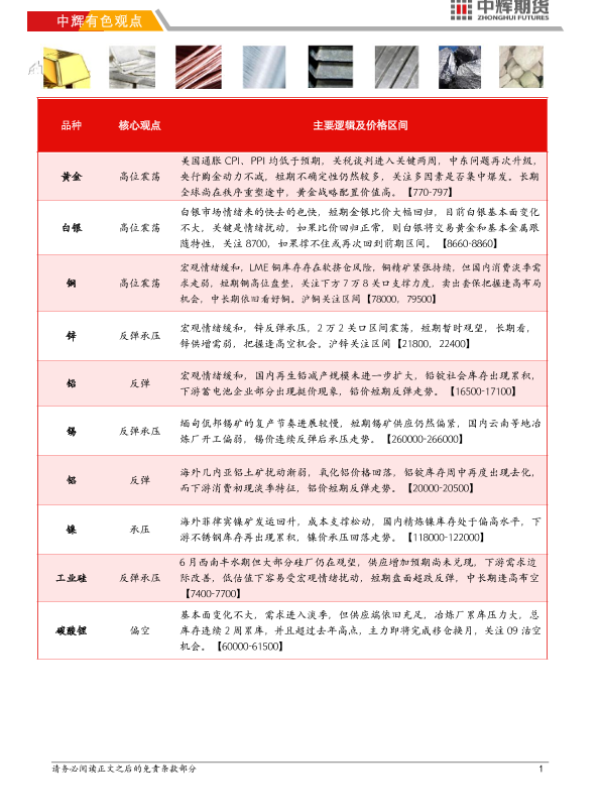 【中辉期货】【20250613】中辉有色观点-8页