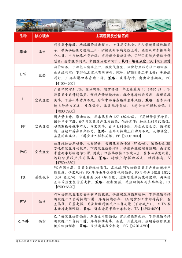 价格分析 市场策略 期货市场 能源化工 风险管理
