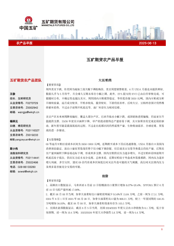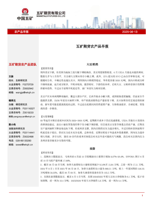 【五矿期货】【20250613】农产品早报-11页