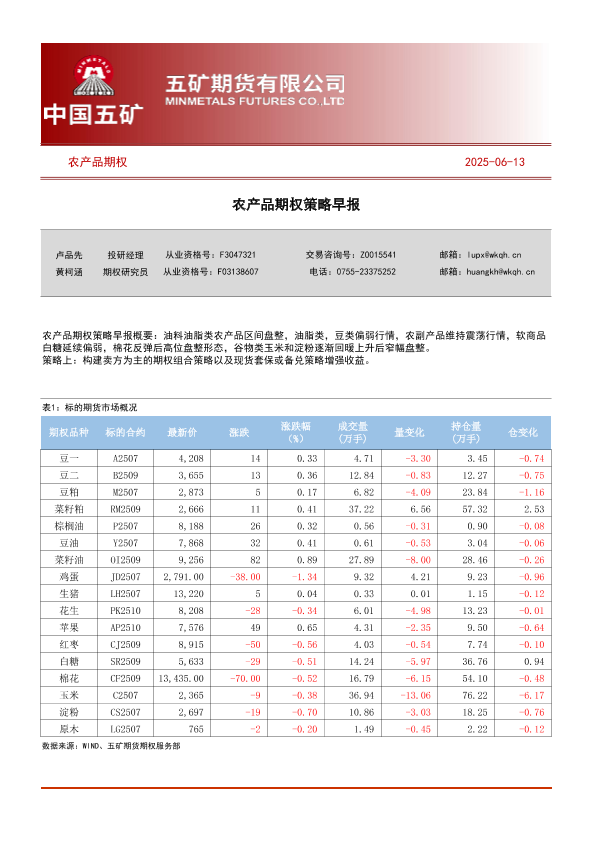 【五矿期货】【20250613】农产品期权策略早报-45页