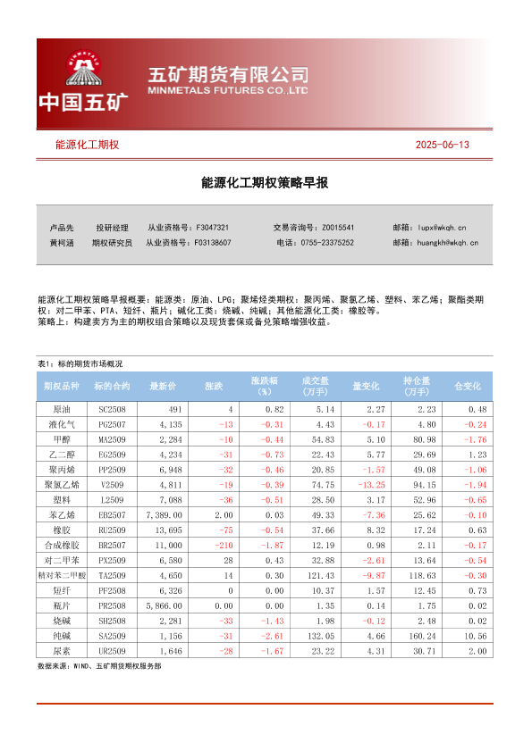 【五矿期货】【20250613】能源化工期权策略早报-45页