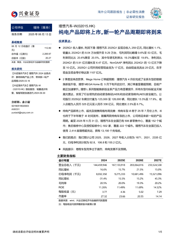 【兴业证券】【20250613】理想汽车-W-纯电产品即将上市_新一轮产品周期即将到来-5页
