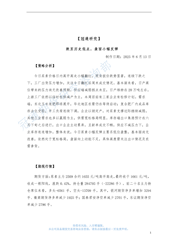 【冠通期货】【20250613】跌至历史低点,盘面小幅反弹-4页