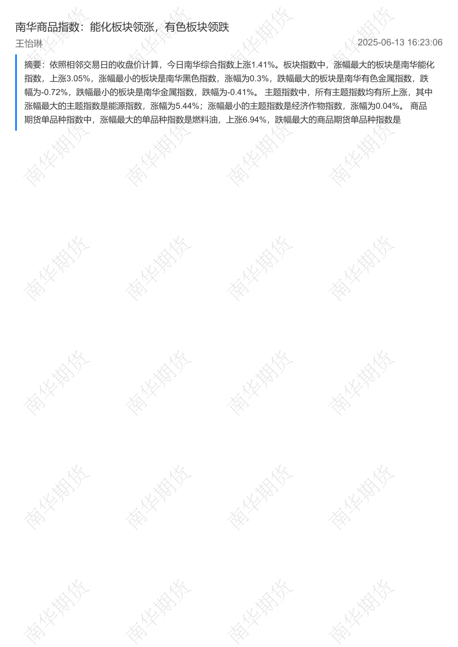 【南华期货】【20250613】南华商品指数:能化板块领涨,有色板块领跌-2页