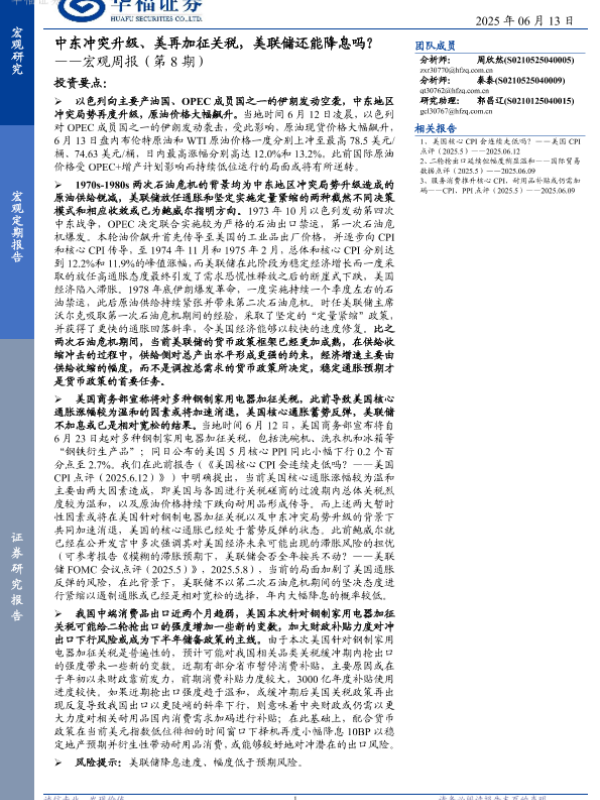 【华福证券】【20250613】中东冲突升级、美再加征关税,美联储还能降息吗?-12页