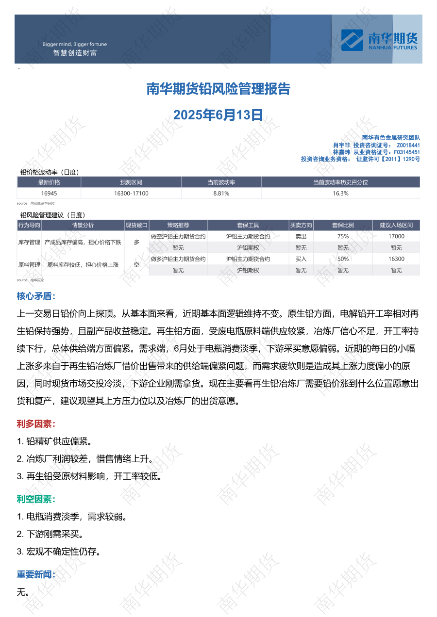 【南华期货】【20250613】铅风险管理报告-6页