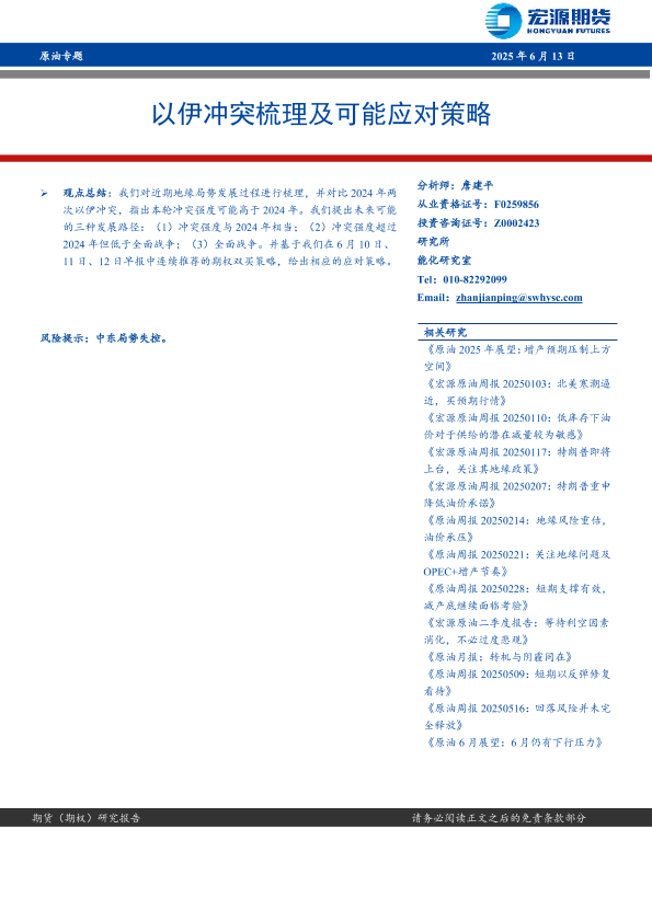 【宏源期货】【20250613】原油专题_以伊冲突梳理及可能应对策略-10页