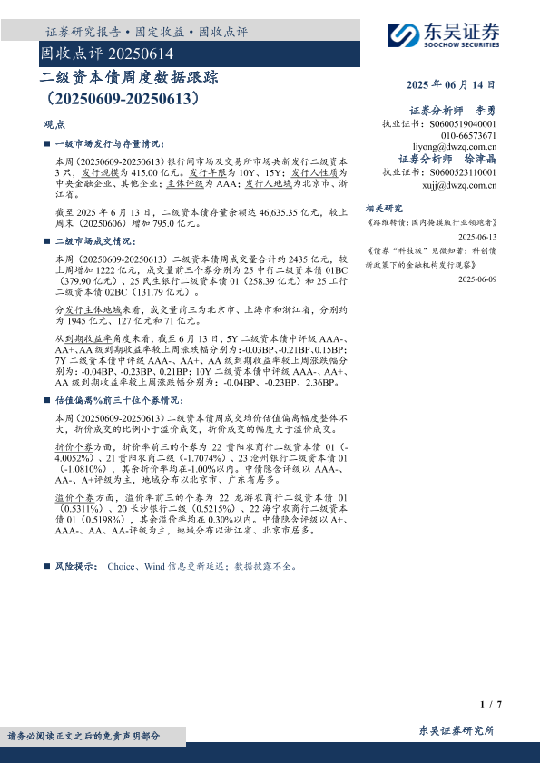【东吴证券】【20250614】二级资本债周度数据跟踪-7页