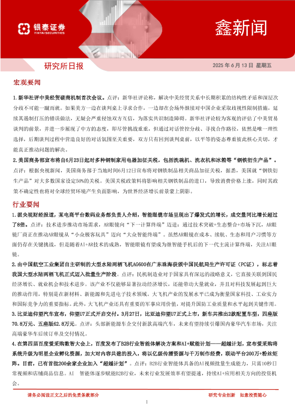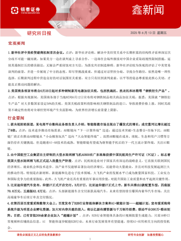 中美经贸 关税政策 大飞机产业 新能源汽车 智能眼镜