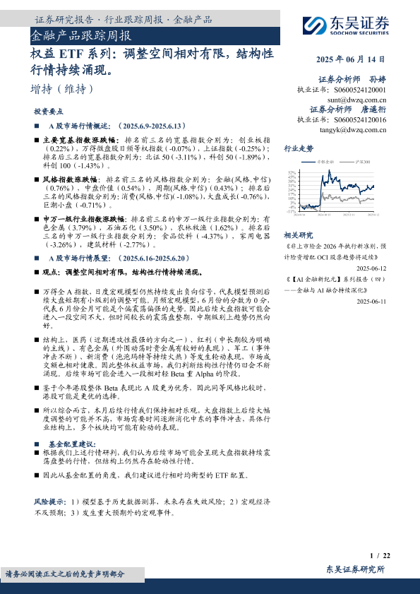【东吴证券】【20250614】金融产品跟踪周报_权益ETF系列_调整空间相对有限_结构性行情持续涌现-22页