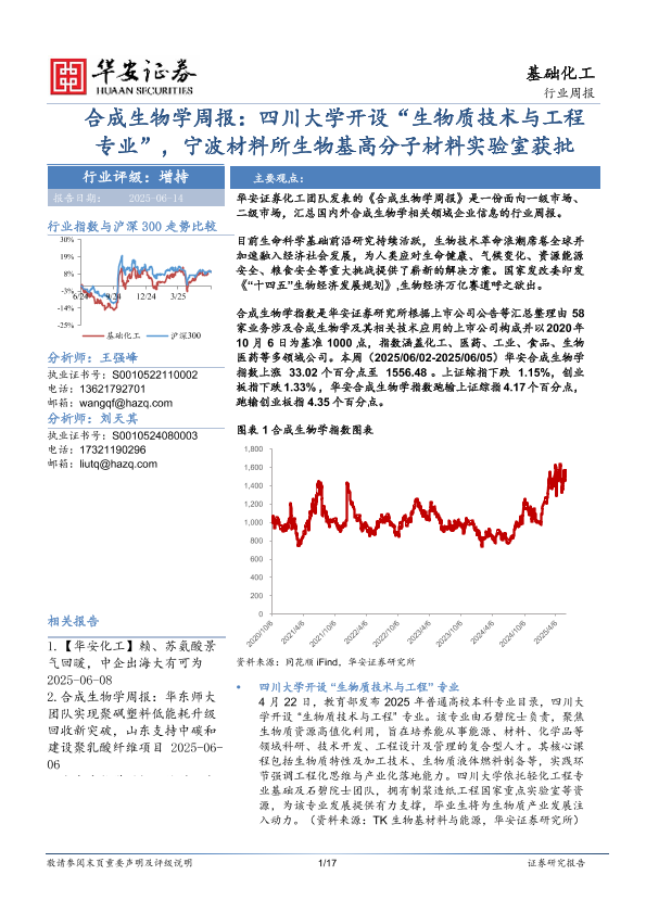 【华安证券】【20250614】合成生物学周报:四川大学开设“生物质技术与工程专业”,宁波材料所生物基高分子材料实验室获批-17页