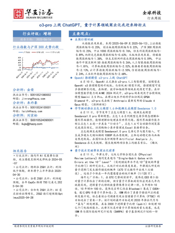 【华安证券】【20250614】全球科技行业周报_o3-pro上线ChatGPT_量子计算领域商业化或迎来转折点-29页