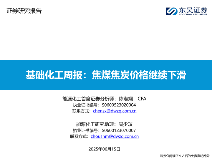 【东吴证券】【20250615】基础化工周报:焦煤焦炭价格继续下滑-18页