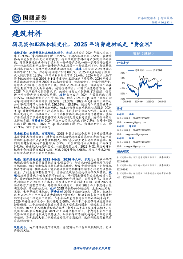 【国盛证券】【20250612】建筑材料:弱现实但酝酿积极变化,2025年消费建材或是“黄金坑”-22页