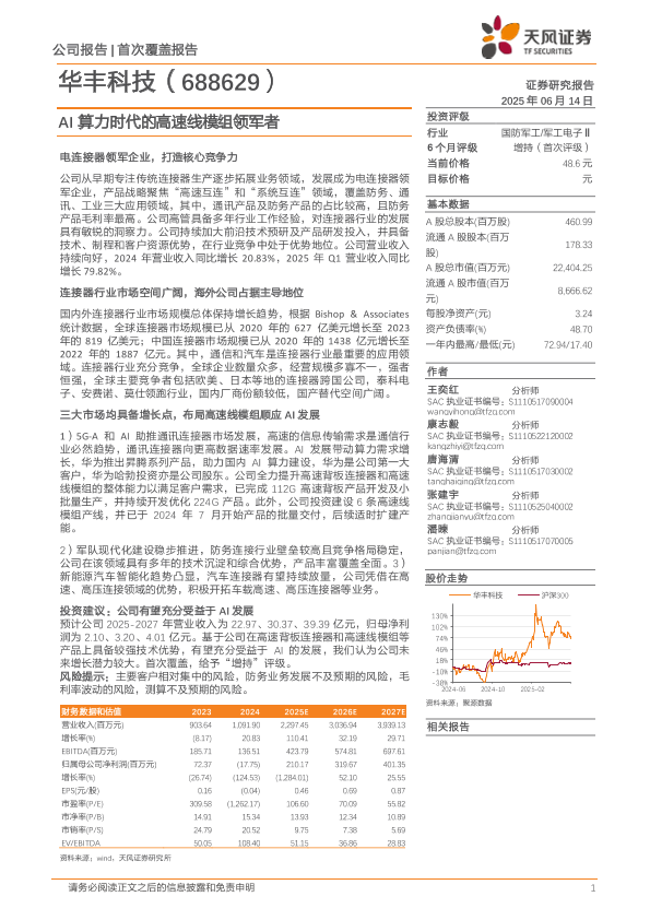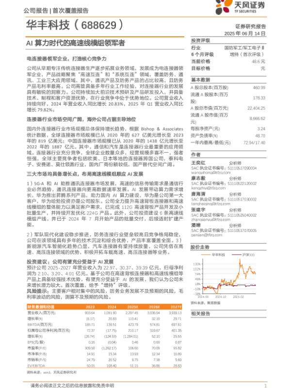 【天风证券】【20250614】深度报告-华丰科技-AI算力时代的高速线模组领军者-22页