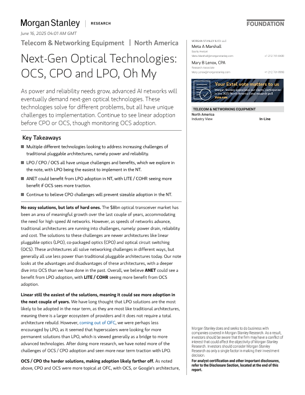 【Morgan Stanley】【2023】Next-Gen Optical Technologies OCS, CPO and LPO, Oh My-11页