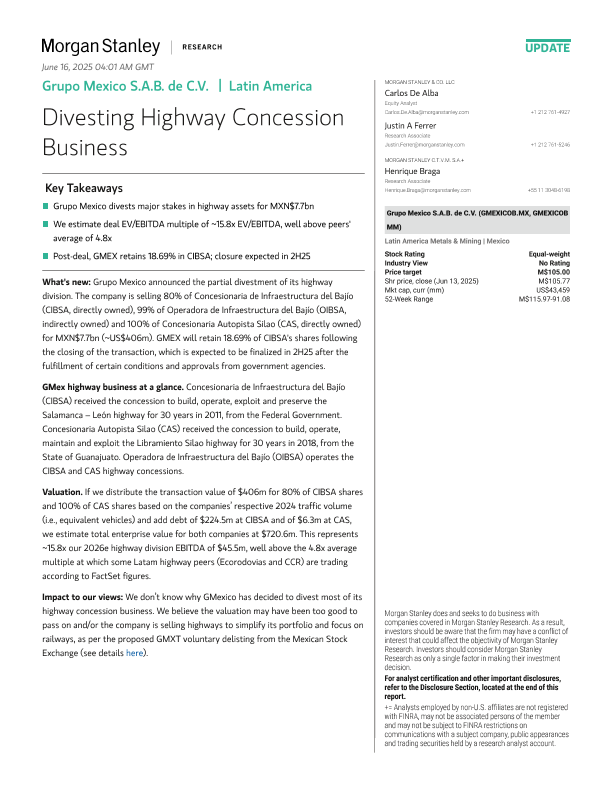 Grupo Mexico 估值分析 拉丁美洲 资产剥离 高速公路特许经营