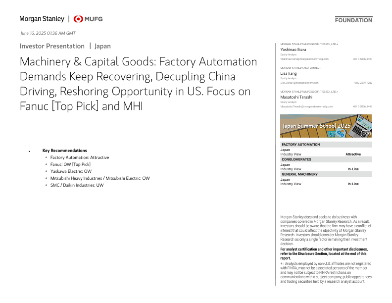三菱重工 发那科 工厂自动化 摩根士丹利 资本货物