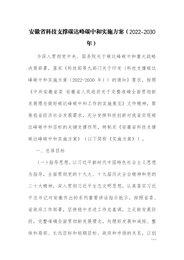 【中共安徽省委】【20220101】安徽省科技支撑碳达峰碳中和实施方案(2022-2030年)-15页