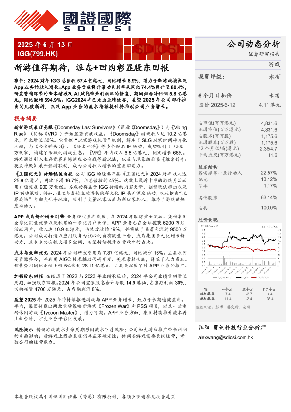 新游发布 游戏产业 股东回报 财务表现 IGG