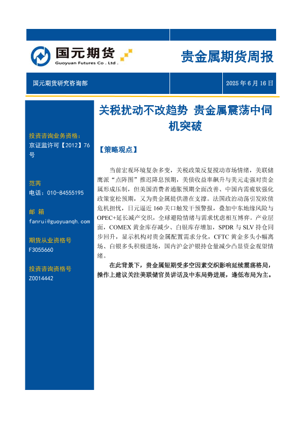 【国元期货】【20250616】贵金属期货周报_关税扰动不改趋势_贵金属震荡中伺机突破-12页