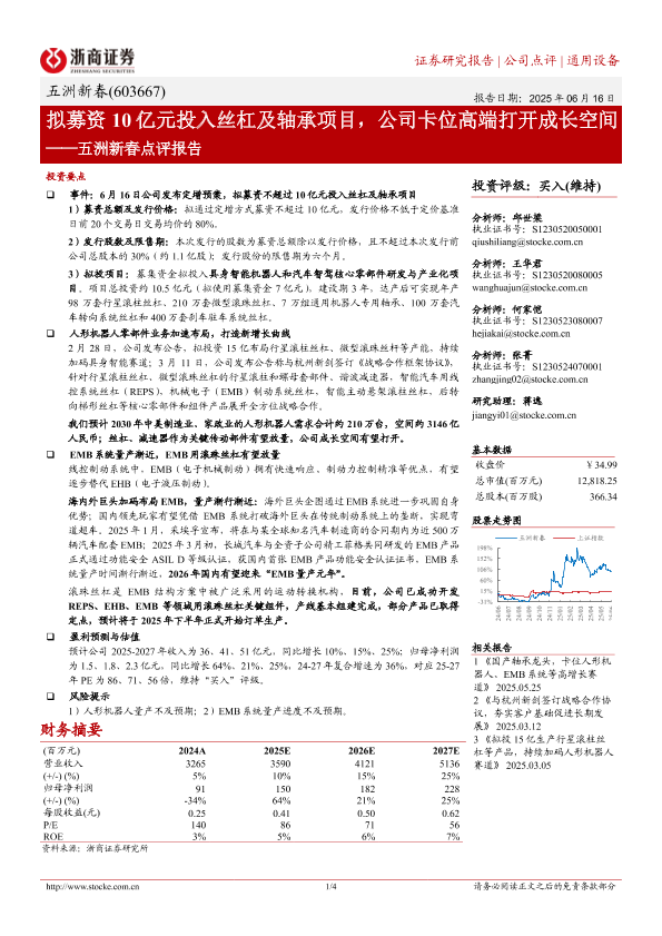 【浙商证券】【20250616】五洲新春点评报告_拟募资10亿元投入丝杠及轴承项目_公司卡位高端打开成长空间-4页