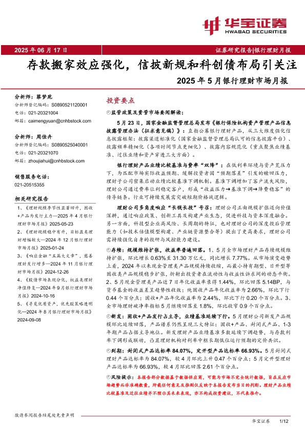 【华宝证券】【20250617】2025年5月银行理财市场月报-12页