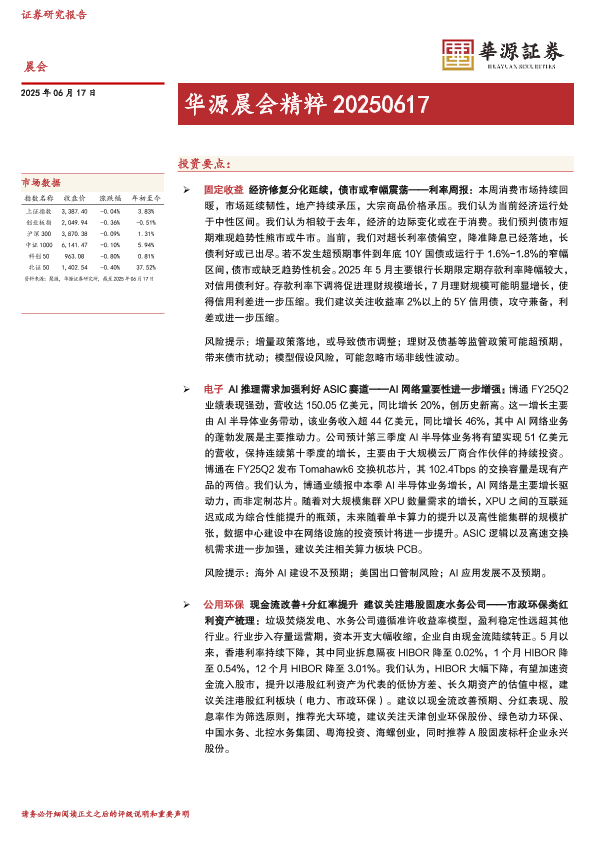AI半导体 房地产政策 物流运输 环保水务 债券市场