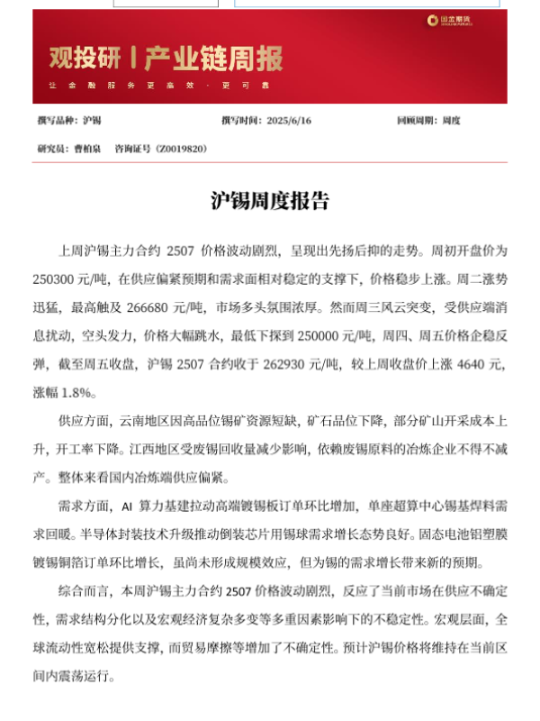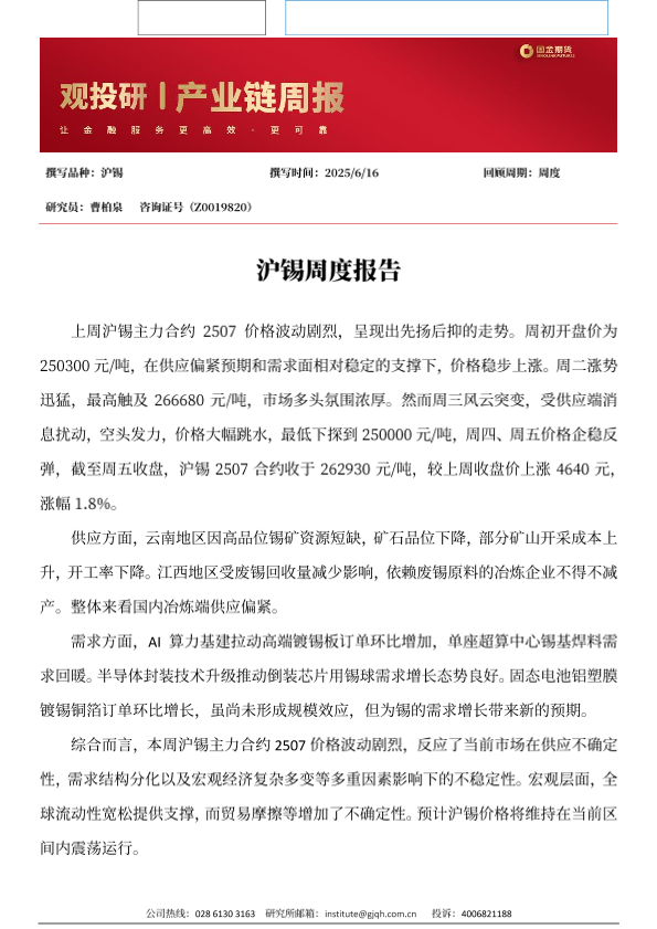 【国金期货】【20250616】沪锡周度报告-2页