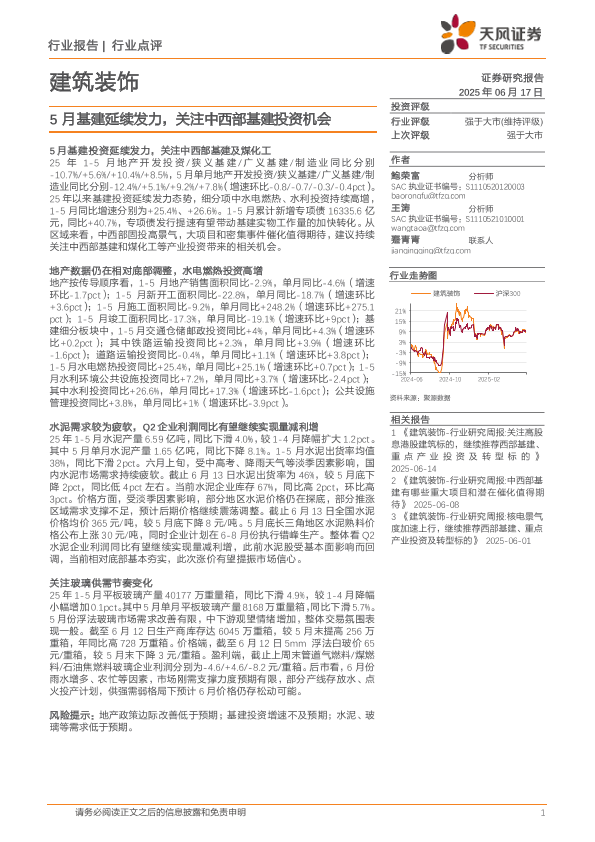 【天风证券】【20250617】建筑装饰_5月基建延续发力_关注中西部基建投资机会-4页