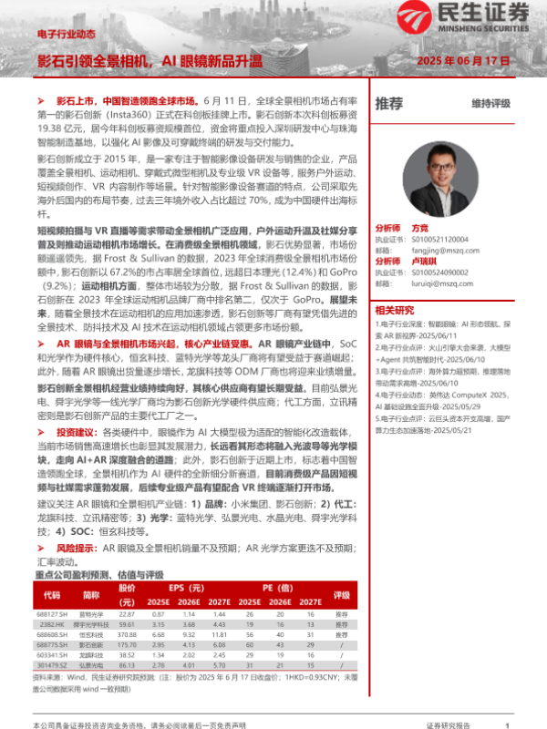 【民生证券】【20250617】影石引领全景相机,AI眼镜新品升温-15页