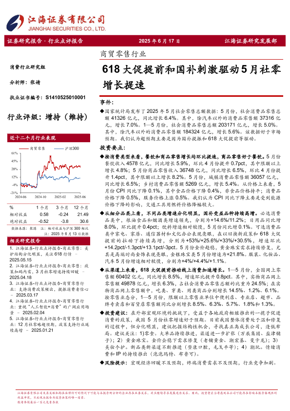 【江海证券】【20250617】618大促提前和国补刺激驱动5月社零增长提速-3页
