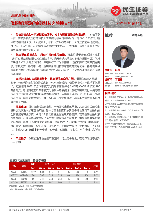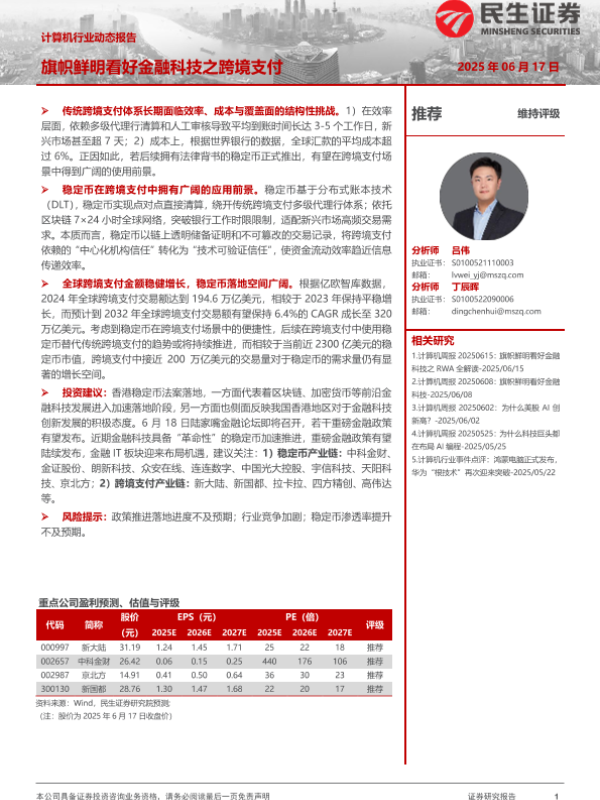 【民生证券】【20250617】计算机行业动态报告:旗帜鲜明看好金融科技之跨境支付-13页