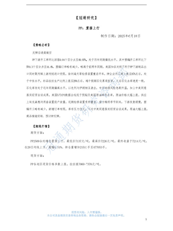 PP 塑料制品 市场预测 期货分析 震荡上行