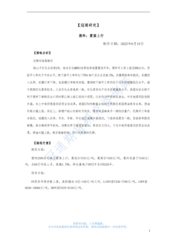 【冠通期货】【20250618】塑料:震荡上行-3页