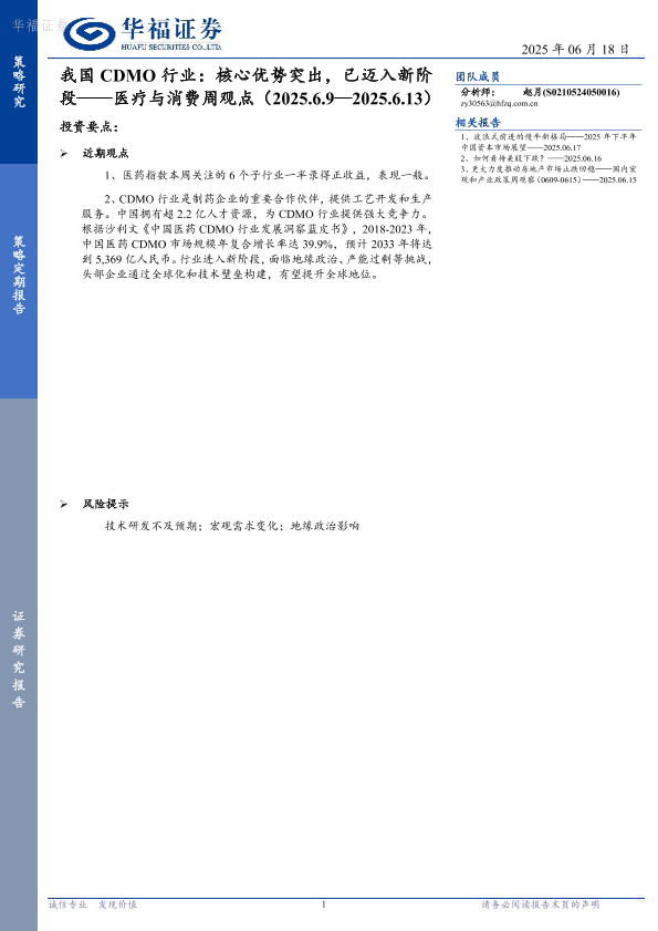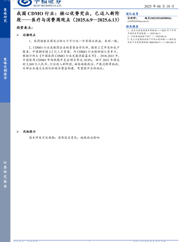 【华福证券】【20250618】我国CDMO行业:核心优势突出,已迈入新阶段-7页