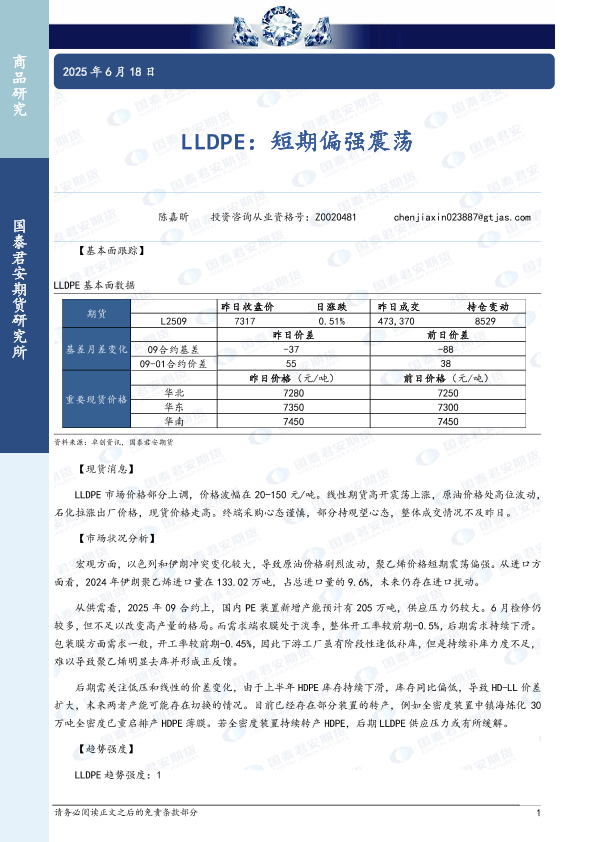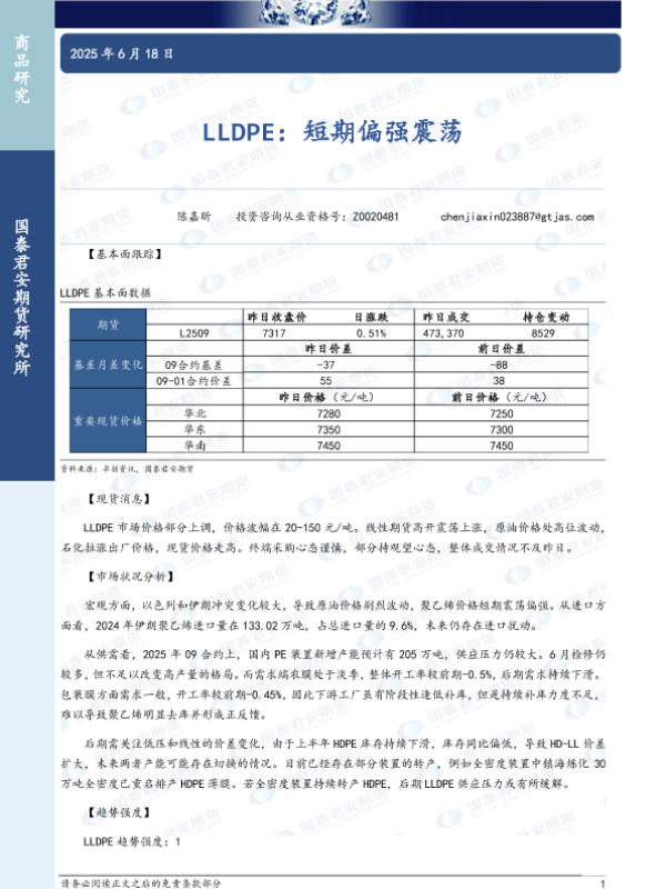 【国泰君安期货】【20250618】LLDPE:短期偏强震荡-3页