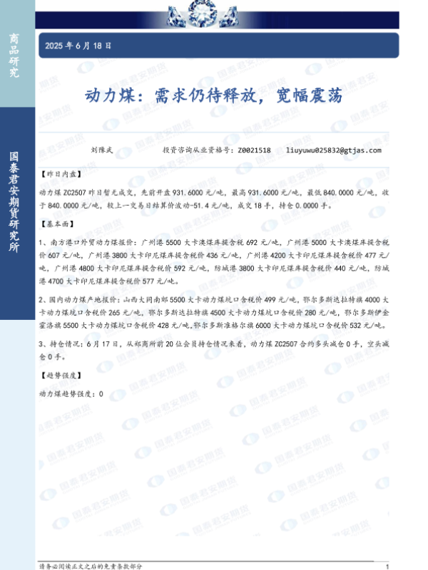 【国泰君安期货】【20250618】动力煤:需求仍待释放,宽幅震荡-2页