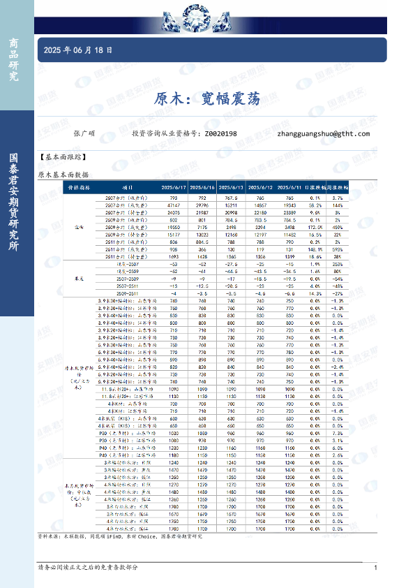 【国泰君安期货】【20250618】原木:宽幅震荡-3页