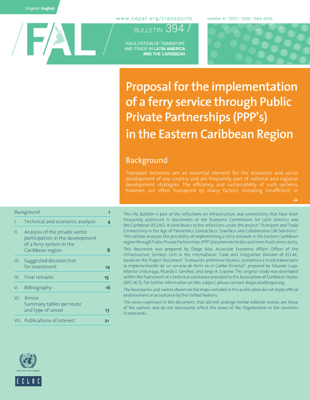 【拉丁美洲经济委员会(ECLAC)】【202212】关于在东加勒比地区通过公私伙伴关系(PPP)实施渡轮服务的提案-21页