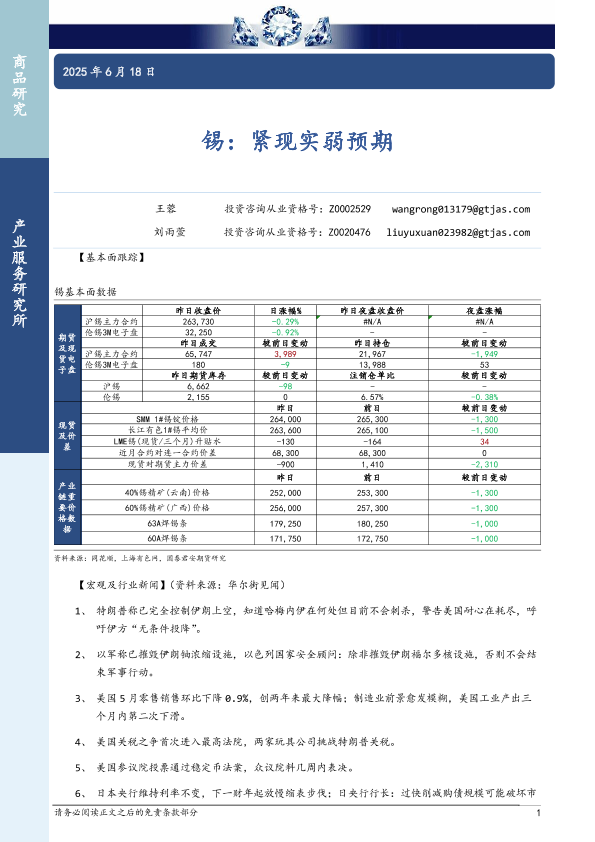 【国泰君安期货】【20250618】锡:紧现实弱预期-3页