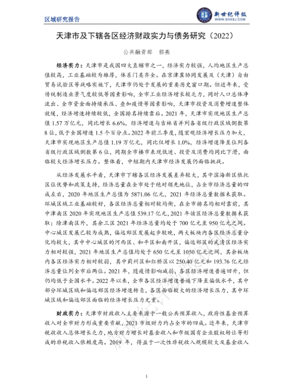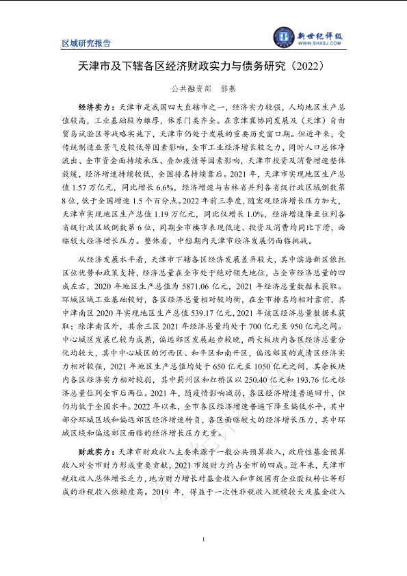 【新世纪评级】【20220101】天津市及下辖各区经济财政实力与债务研究(2022)-30页