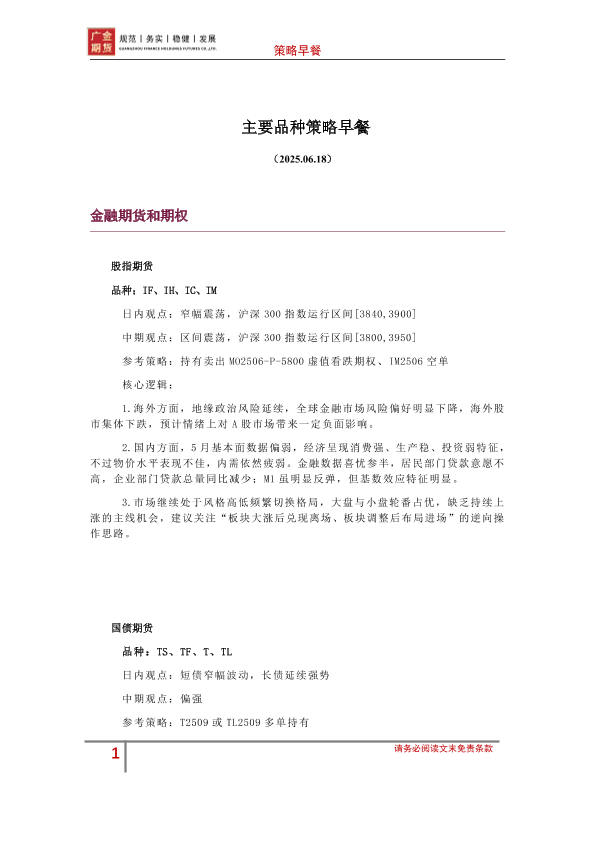【广金期货】【20250618】主要品种策略早餐-10页